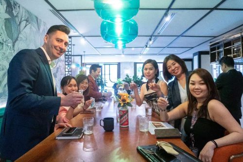 在新加坡五粮液旗舰店的参观之行结束后,当晚的海外品鉴会暨投资者恳谈会成为了更加难忘的时刻。来宾们共聚一堂,共同品味五粮液的千年历史与酒文化的精髓。晚宴上,宜宾五粮液股份有限公司党委委员、副总经理兼董秘——章欣先生向来宾们分享了五粮液的悠久历史,述说了酿酒工艺的传承与创新。
