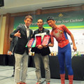 台湾调酒师许博胜以一款名为“黄金年代” (golden year)的金黄色鸡尾酒,加上蜘蛛侠为招牌装扮,不断使出吐丝、腾空、跳跃等招数,完美地结合了调酒与动漫角色,让在场观众目不暇接。最后,台湾许博胜和一位来自日本的女选手成为大赛赢家,各自捧走了花式抛瓶和花式调酒的冠军。